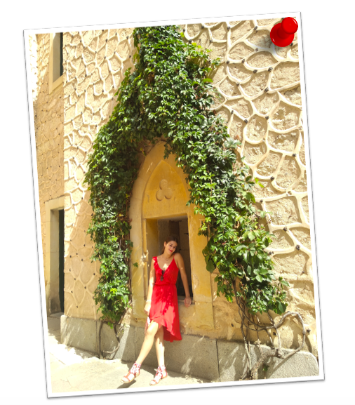 NOTA: El lugar de la imagen donde se me ve con el vestido rojo lo encontramos de chiripa… y vale la pena. Busca en el GPS «pradera de San marcos, Segovia».