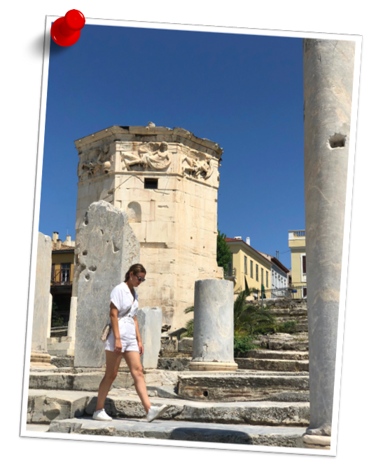 Siguiendo hacia adelante verás ruinas de lo que fue en su día el Ágora Romana. No obstante hay un edificio que se conserva y es la Torre de los Vientos 🌬️. Este edificio se puede considerar como el primer reloj ⏳ público europeo. Funcionaba con mecanismo hidráulico y poseía también un compás astronómico y relojes solares para las estaciones del año.